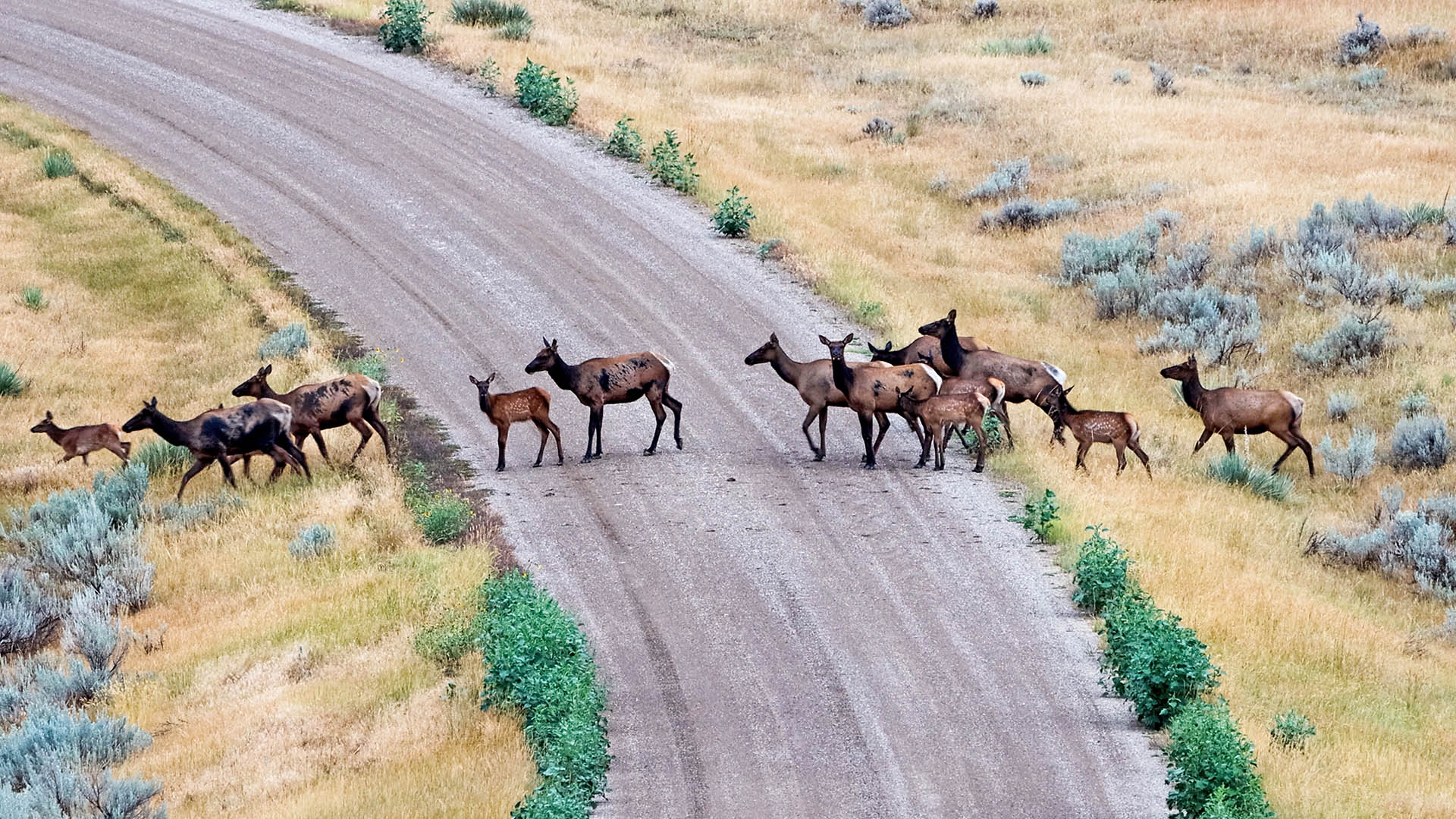 Aerial Elk Crossing Road Crooked Creek Ranch Winnett Mt