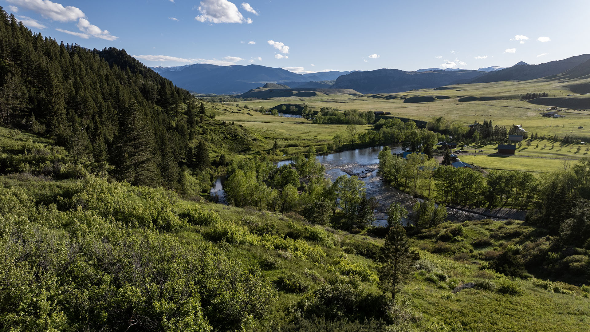 Aerial Beartooth Mountains Castle Rock River Ranch Montana